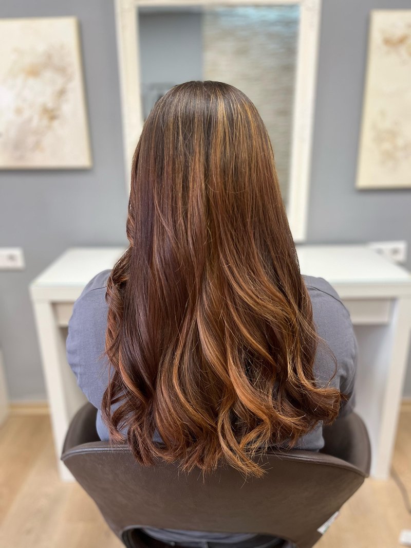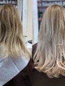 Haarverlängerung/-verdichtung, sowie div. Farb- und Strähnen Techniken.